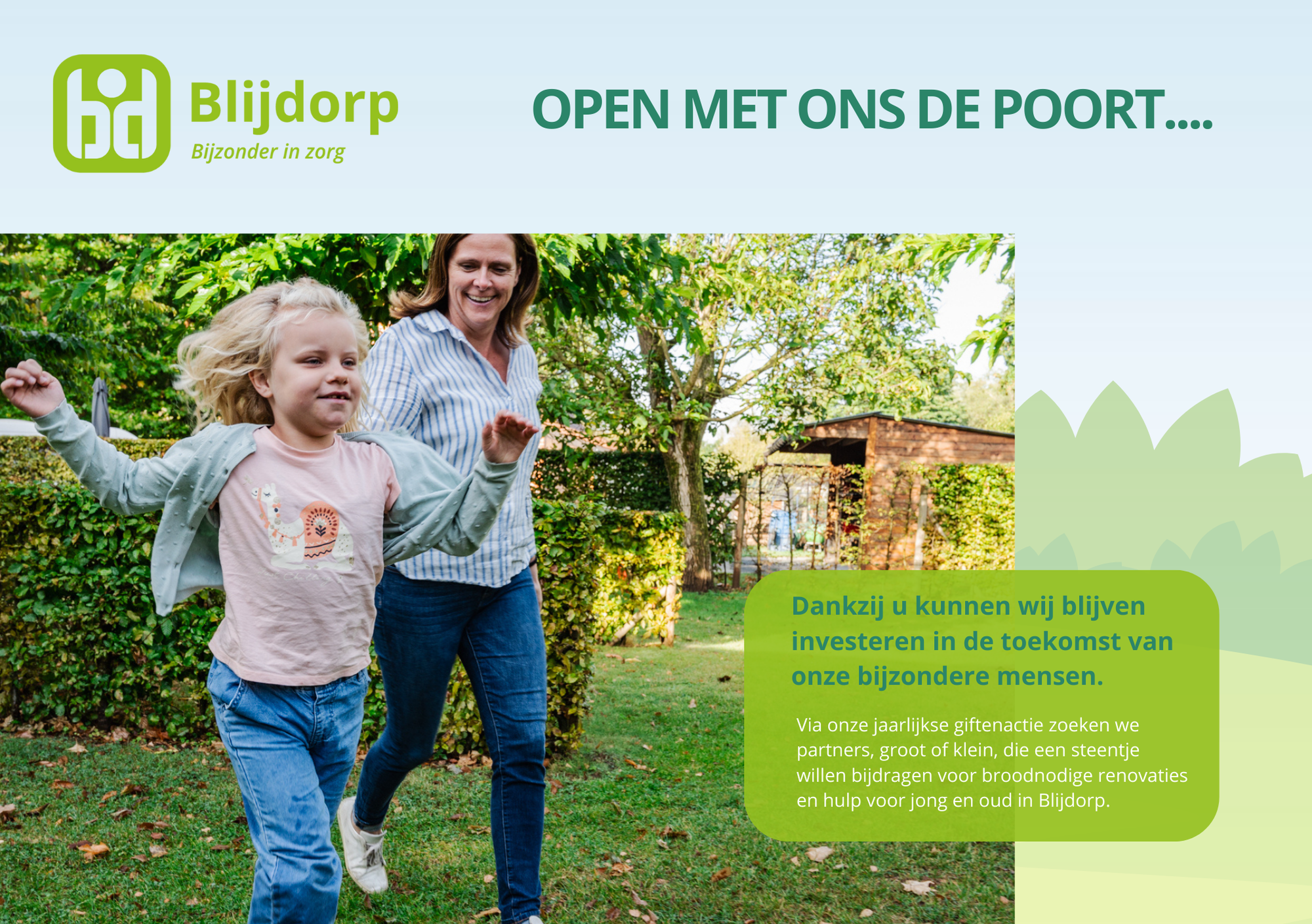 Iedereen - ook de kwetsbaren in onze maatschappij - heeft recht op een kwaliteitsvol en liefdevol leven. Omringd door de best mogelijke en waardevolle zorgen. Daarvoor zetten de Blijdorp-medewerkers zich dagdagelijks in, reeds meer dan 50 jaar!